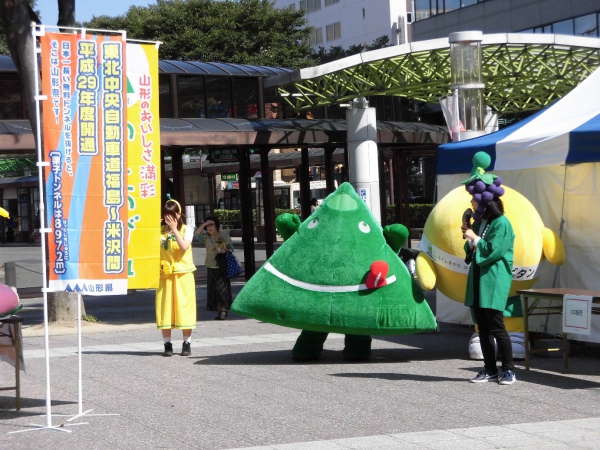 高速道路のパネルを展示し、置賜地域へのアクセス向上をPRしました。