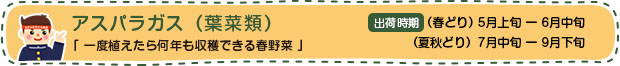 原産地とされる南ヨーロッパからロシア南部では古くから自生しており、ヨーロッパでは紀元前からローマやギリシャで栽培されていた歴史の古い野菜です。食用のほかに薬としても利用されていたようです。日本に伝わったのは江戸時代ですが、当時は細い葉の姿を鑑賞するために栽培されていました。食用としては大正時代に北海道で栽培が始まりました。当初はホワイトアスパラガスがメインでほとんどが缶詰にされていましたが、昭和40年代以降はグリーンアスパラガスが好まれるようになり、ホワイトアスパラガスは減少しました。