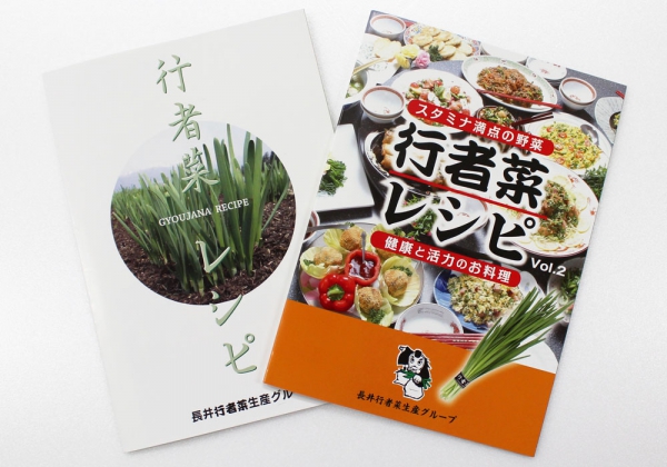 地域の人の協力を得ながら、行者菜をPRし続けている遠藤さん。2013年には、長井市で料理教室を開いている小野紀代子氏考案のレシピ本第二弾を発行し、(第一弾は2009年発行)さらなる可能性を見出しています。