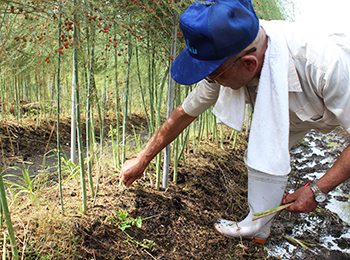 「アスパラガスは転作作物の中で一番いいと思うな。」と梅津さん。たくさんの水分を必要とするアスパラガスには、田んぼは最適な栽培場所。梅津さんはかつて大豆を栽培していたそうですが、栽培しやすく収量が多いことなどから、完全にアスパラガスに切り替えたそうです。